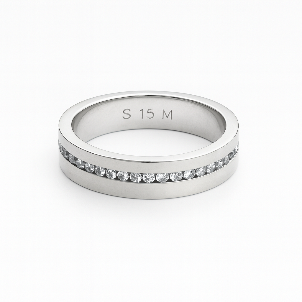 Aliança de compromisso cravejada em volta zircônia cristal transparente prata 925