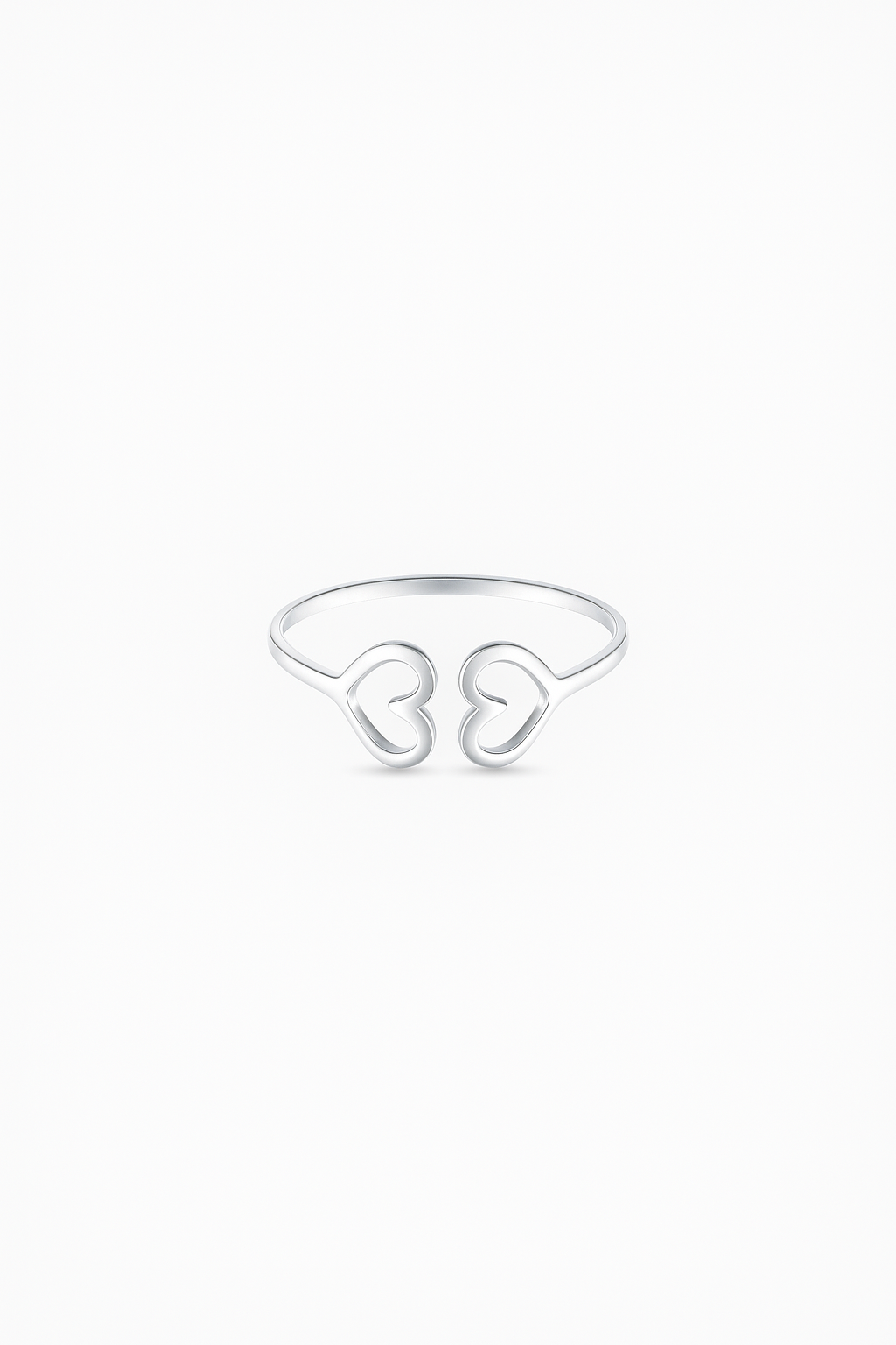 Anel 2 corações regulável liso na prata 925