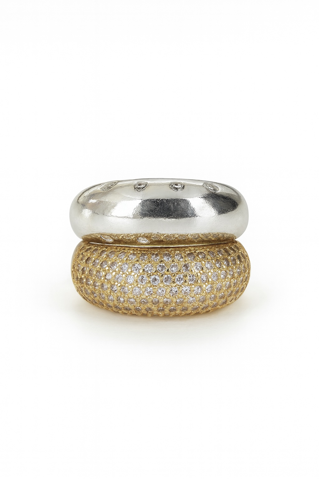 Anel 2 em 1 com dois banhos ouro 18k e prata