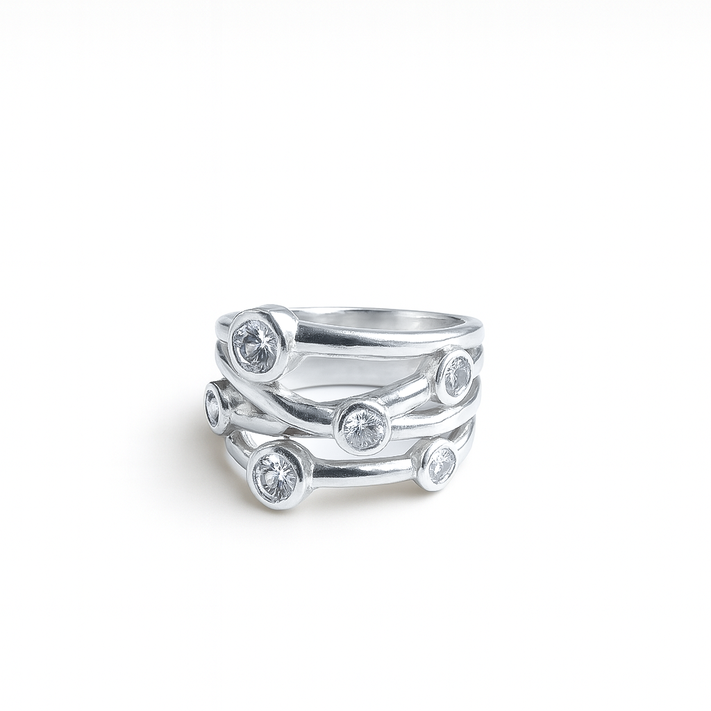 Anel 4 voltas com pontos de luz na zircônia cristal transparente prata 925