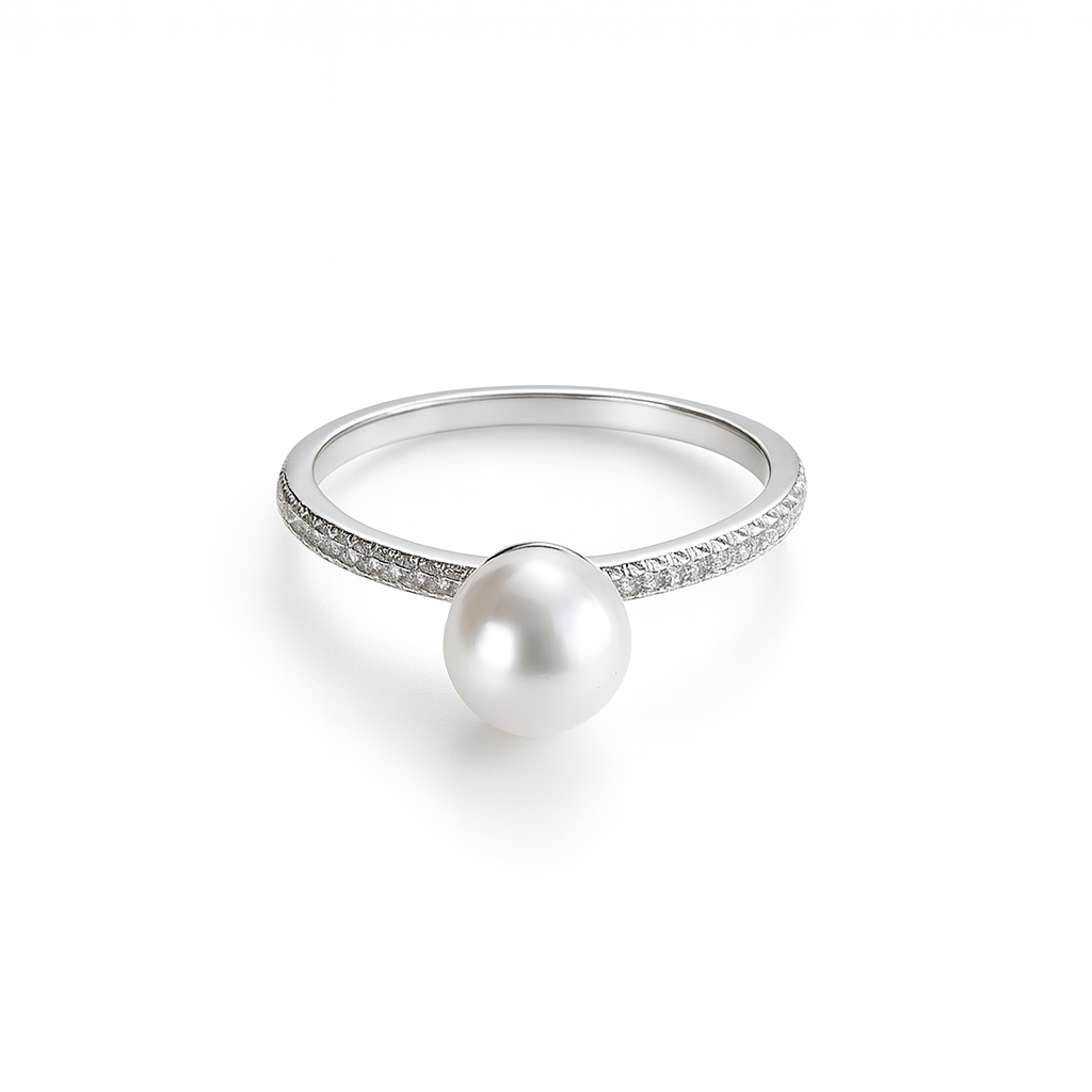 Anel aparador com pérola shell todo cravejado em volta na zircônia prata 925