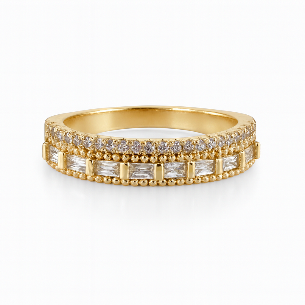Anel aparador grosso cravejado em zircônia cristal banhado a ouro 18k 5mm de espessura