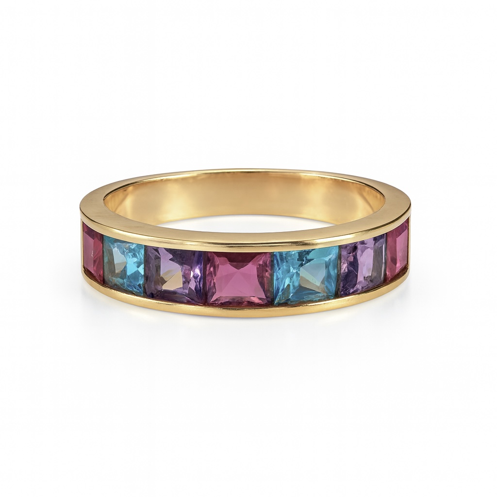 Anel aparador pedra colorida banhado a ouro 18k dourado