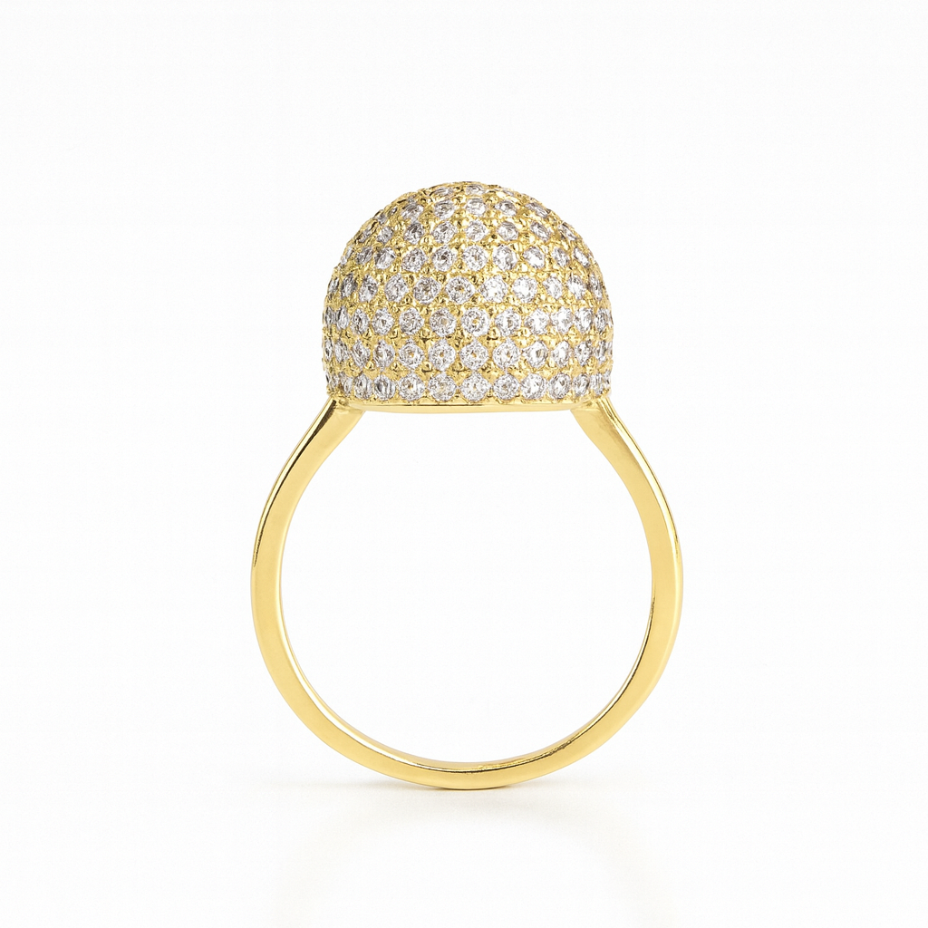 Anel bola cravejada em pedra zircônia cristal transparente banhado a ouro 18k amarelo