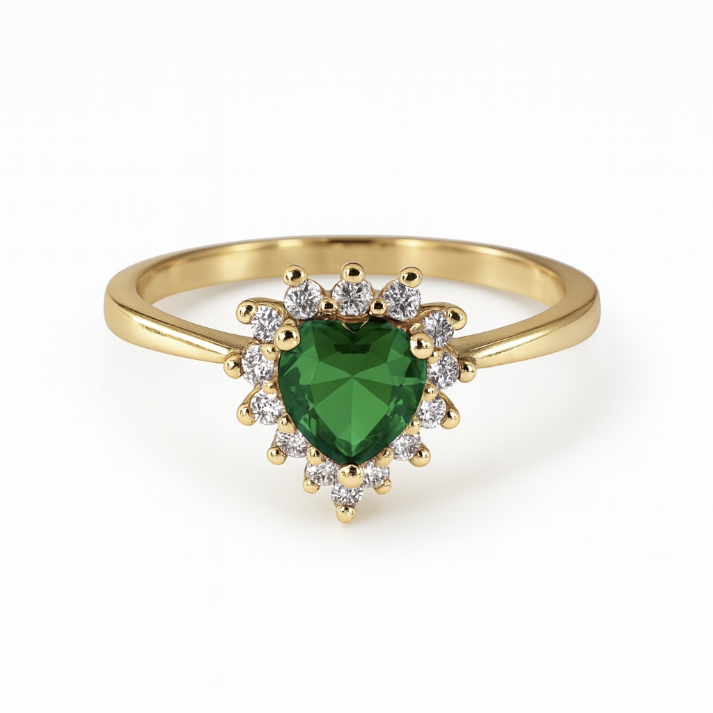 Anel coração pedra verde esmeralda banhado a ouro 18k dourado