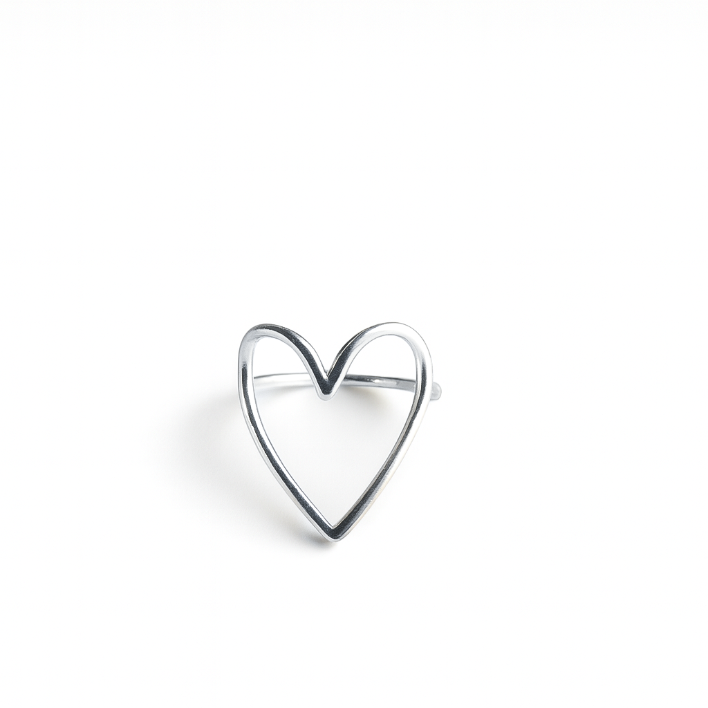 Anel coração vazado liso clássico prata 925