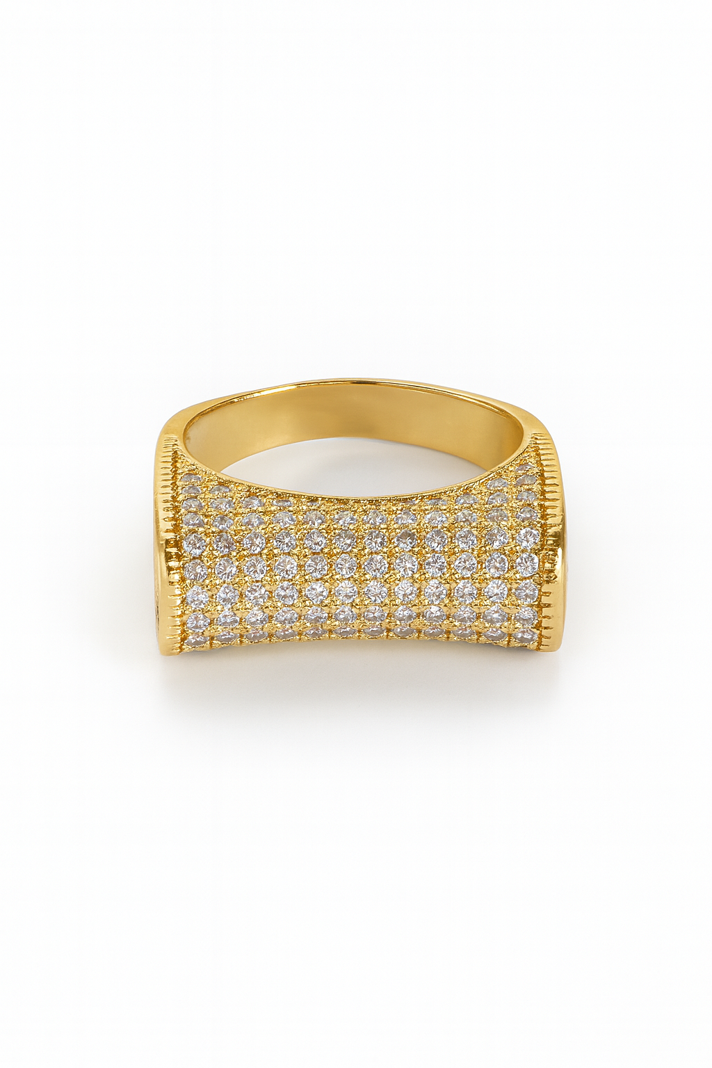 Anel de luxo cravejado em zircônia cristal transparente banhado a ouro 18k amarelo