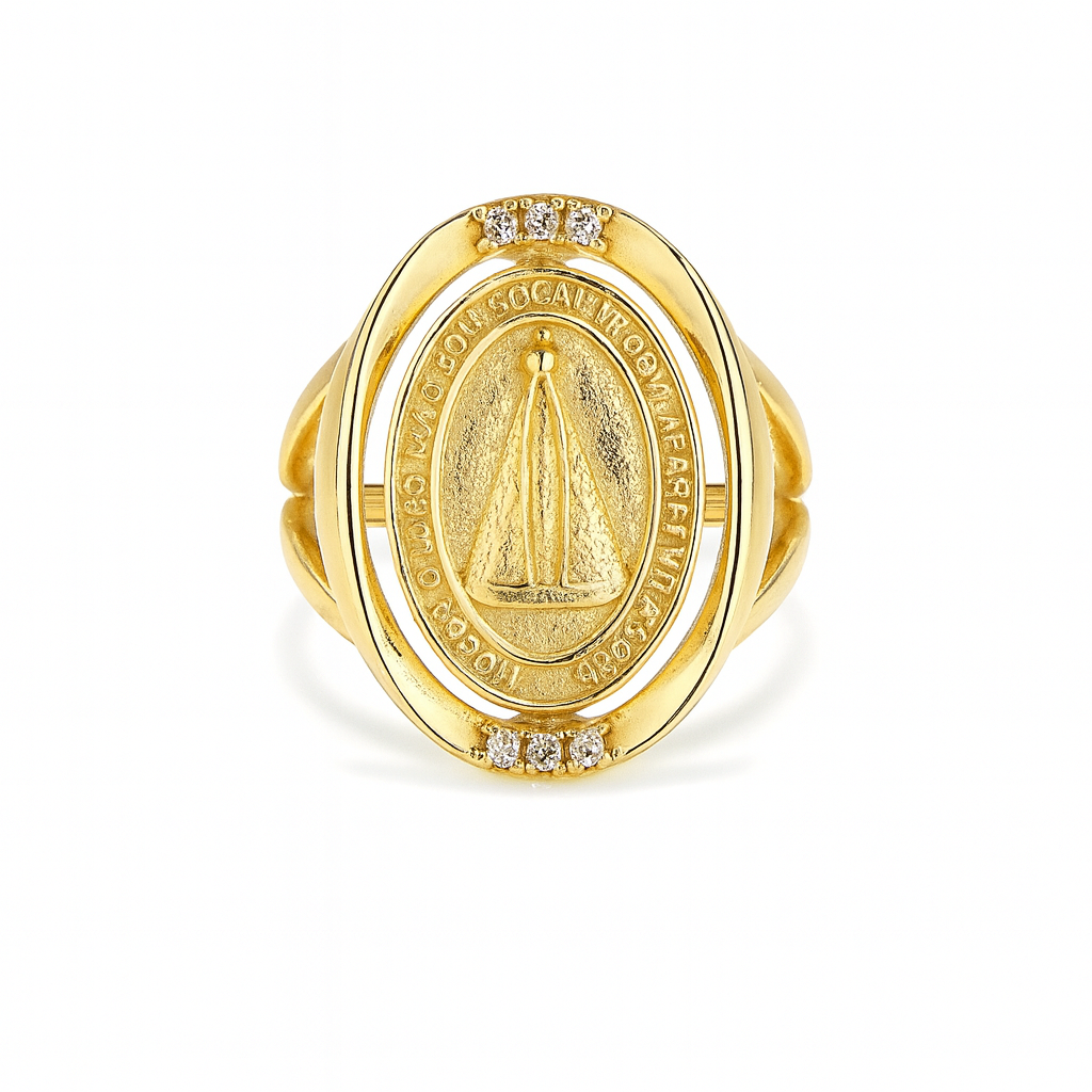 Anel medalha de Nossa Senhora Aparecida quem gira banhada a ouro 18k amarelo