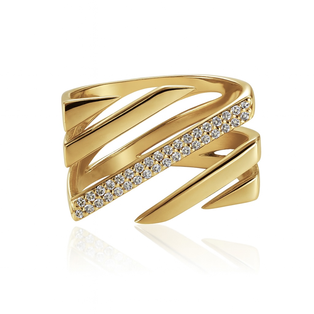 Anel placa vazado com cravação em zircônia ia banhado a ouro 18k dourado