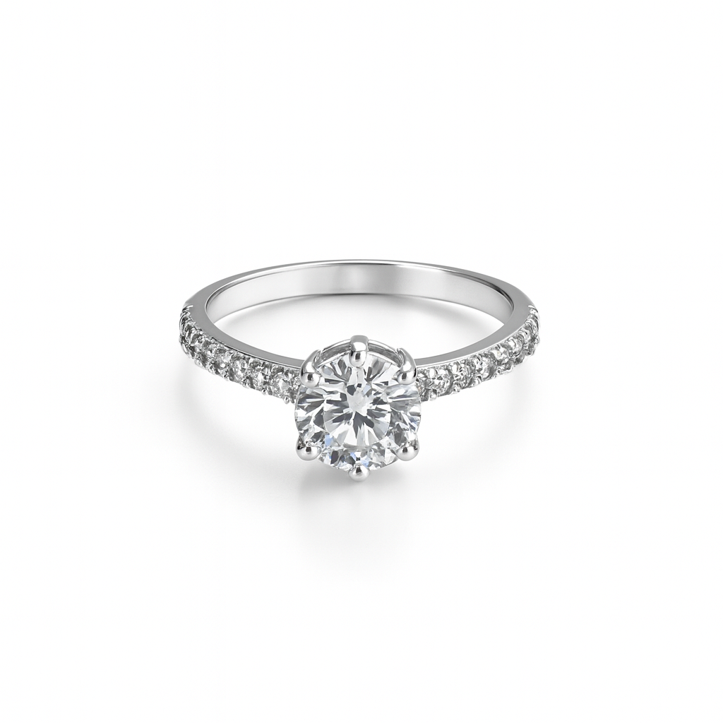 Anel solitário clássico cravejado nas laterais com pedra zircônia cristal 0,6 mm prata 925