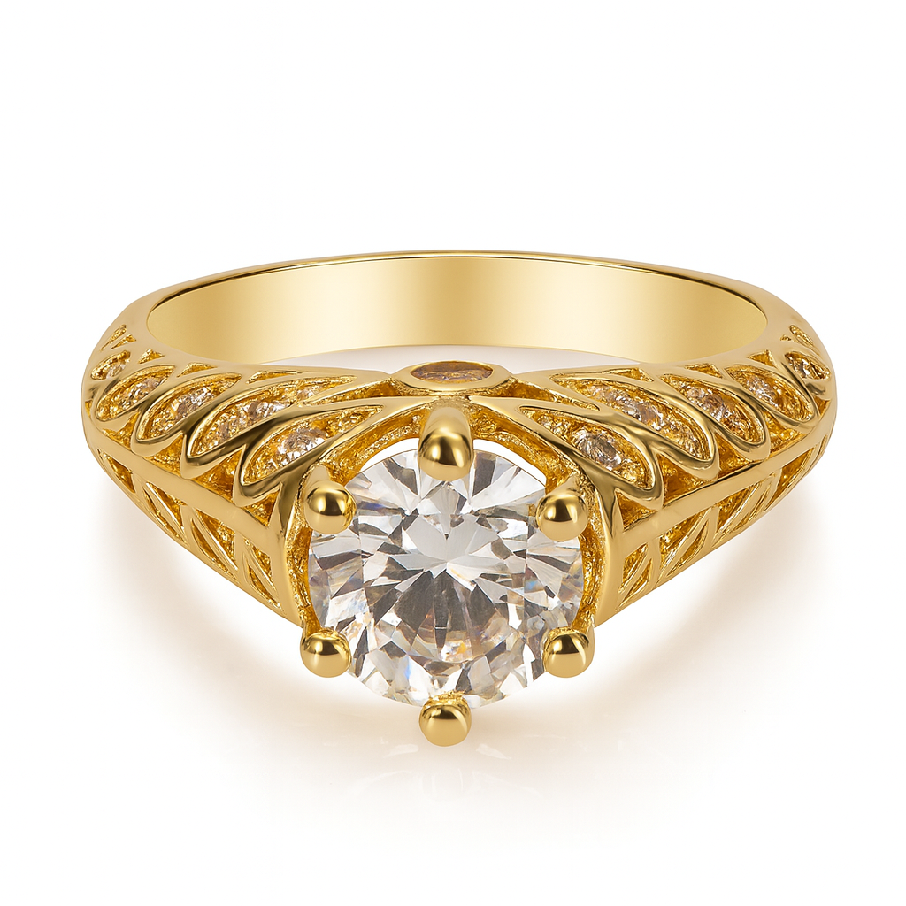 Anel solitário formatura pedra zircônia cristal transparente banhado a ouro 18k dourado