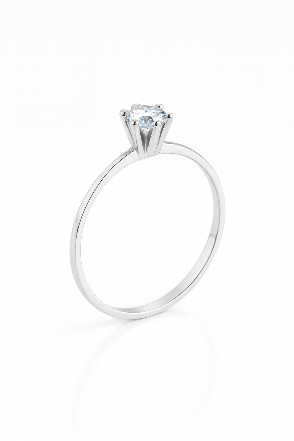 Anel solitário tradicional ponto de luz cristal prata 925