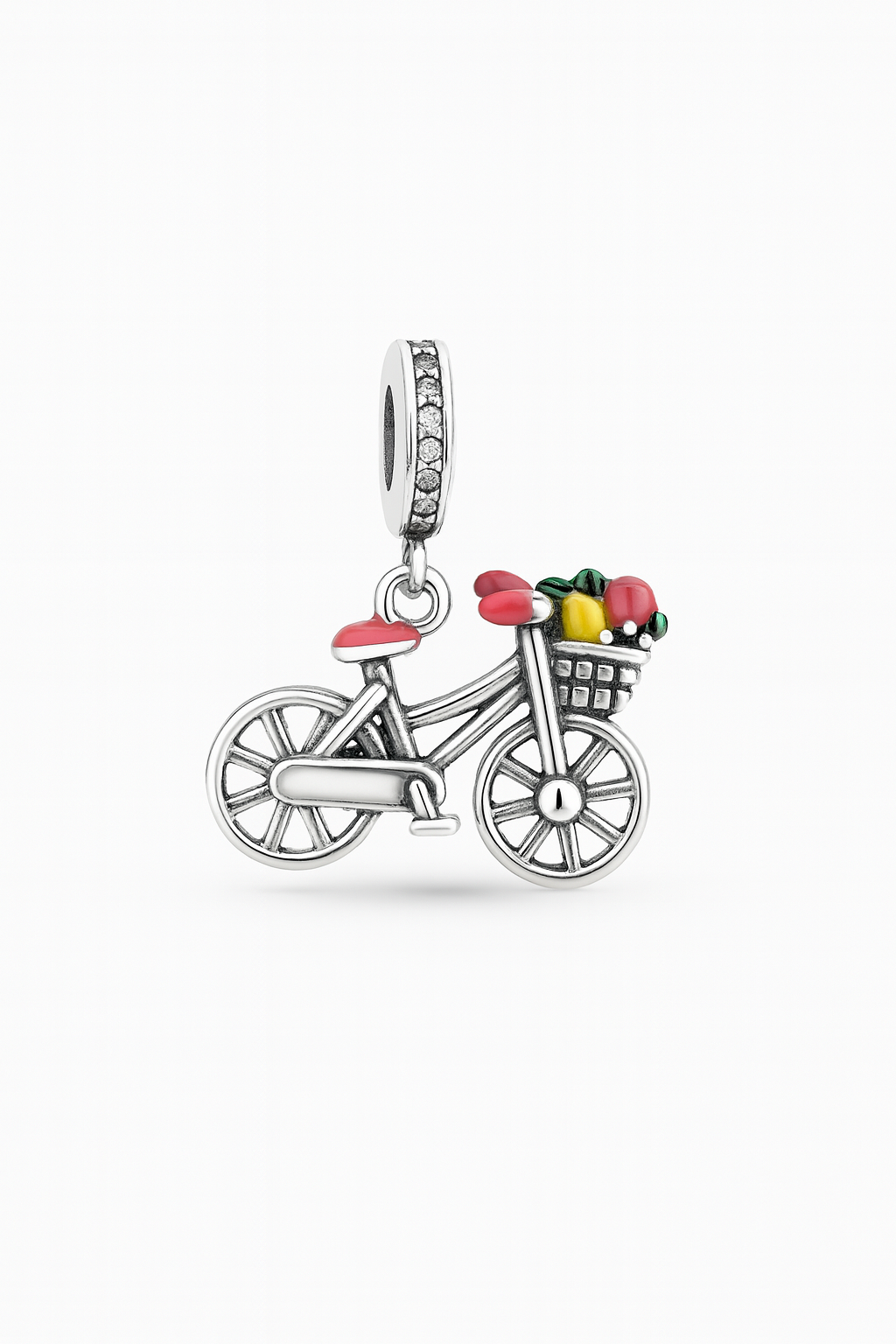Berloque bicicleta com resina colorida prata 925