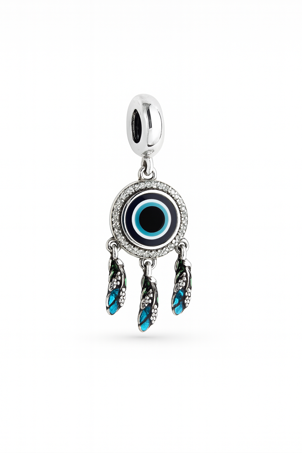 Berloque olho grego e filtro dos sonhos com resina e zircônia cristal prata 925