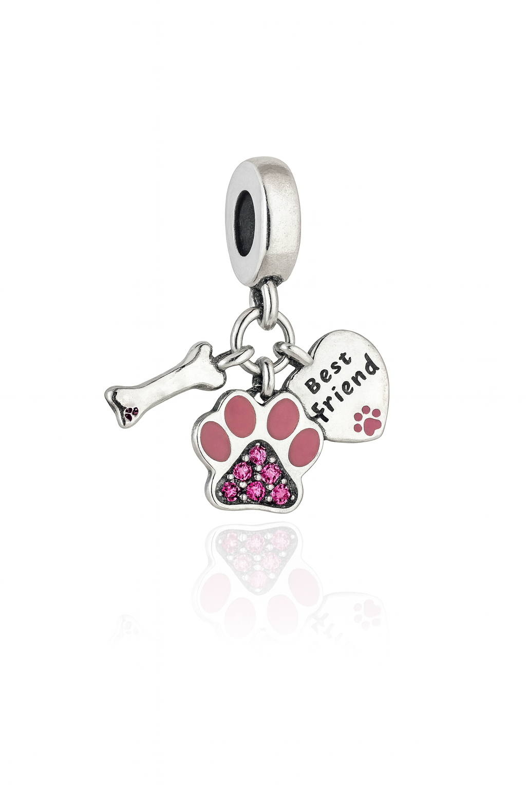 Berloque Pet best friend com zircônia rosa pink prata 925