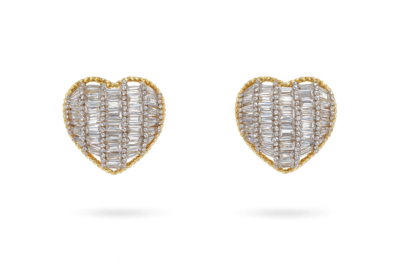 Brinco coração com zircônias baguete