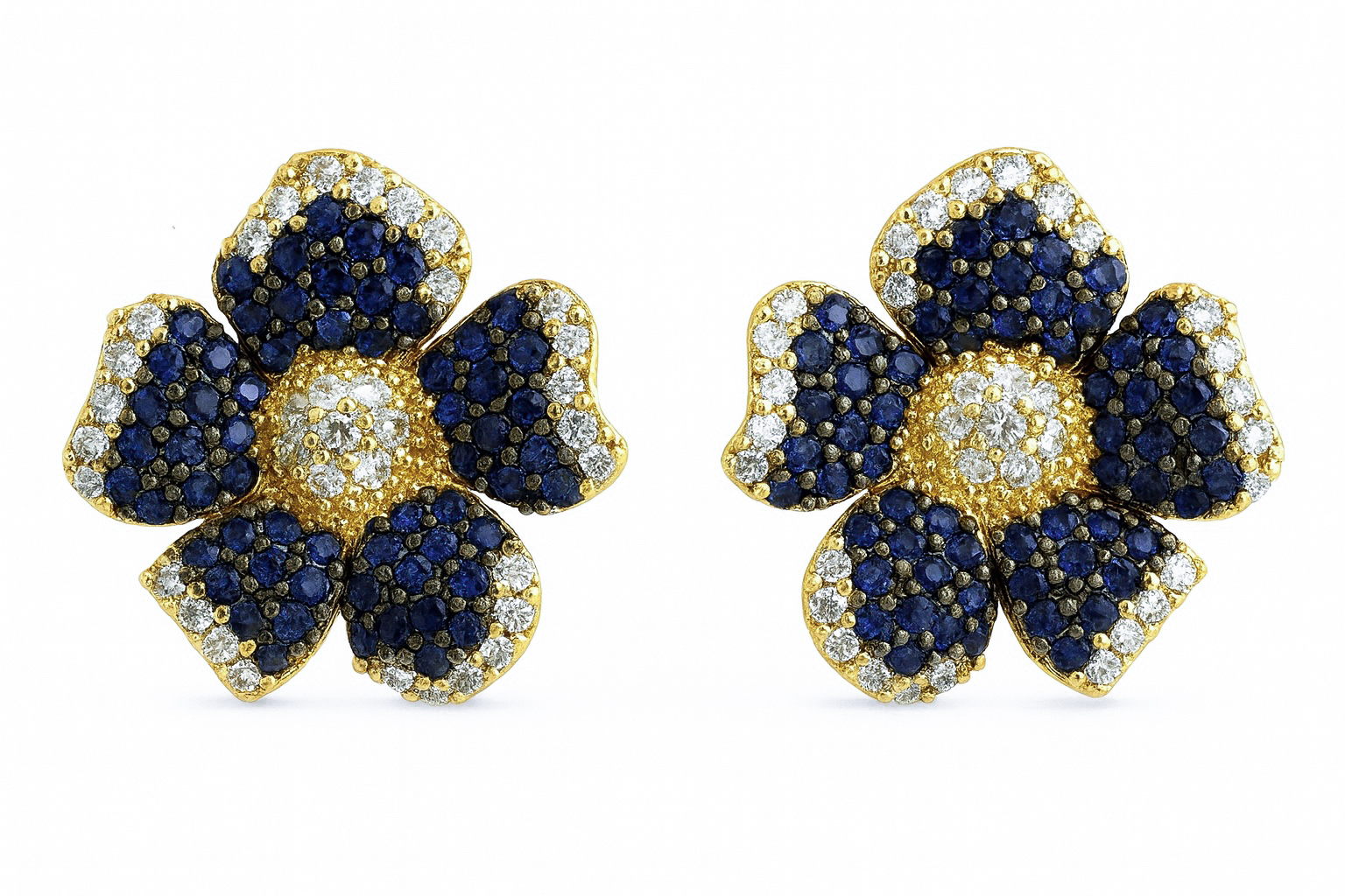 Brinco flor cravejado em zircônia safira azul