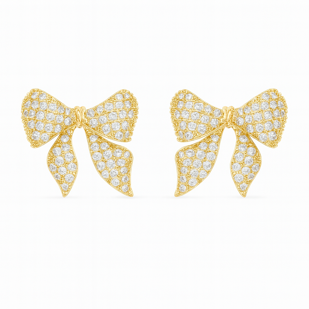 Brinco laço cravejado em zircônia cristal