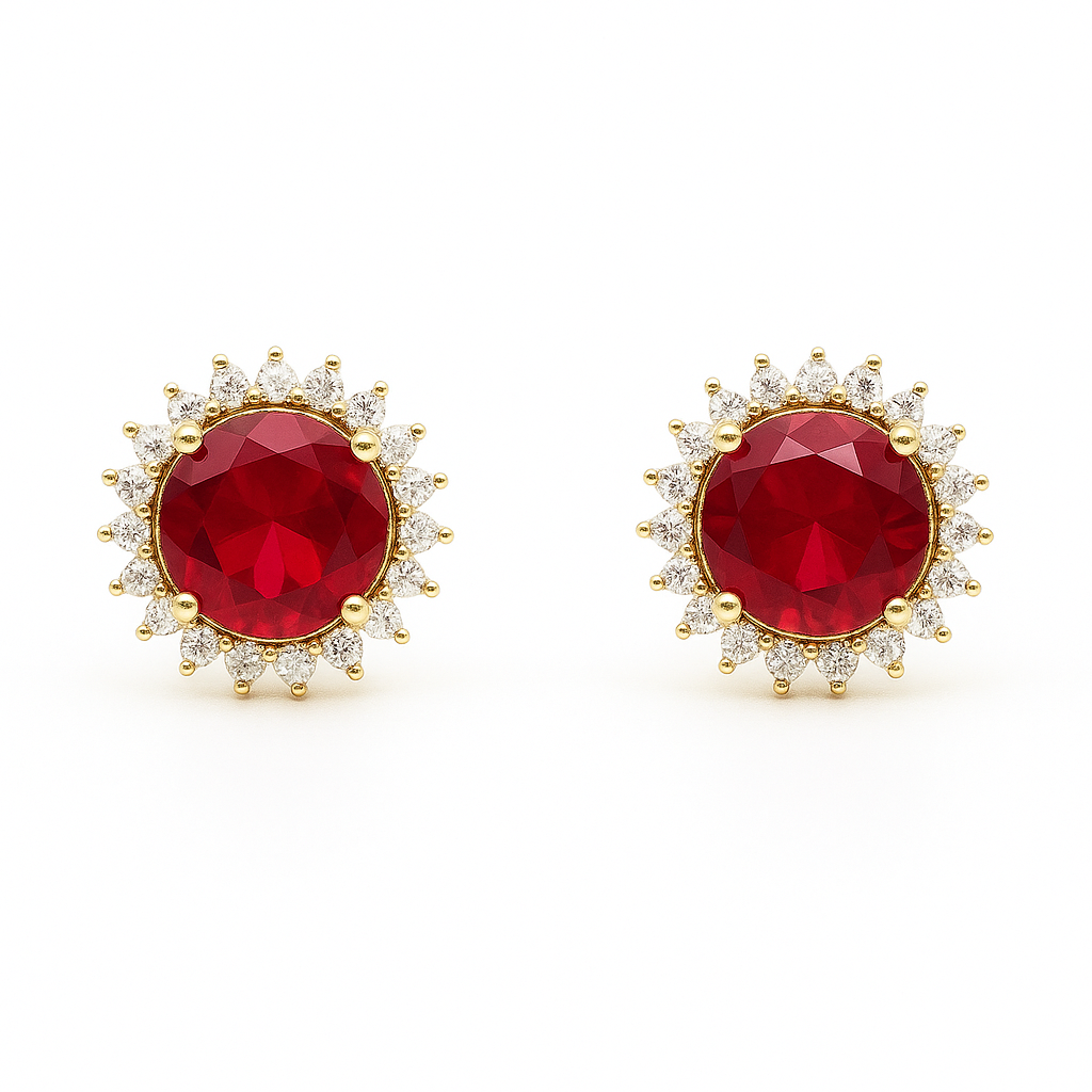 Brinco vermelho rubi com zircônia nas laterais