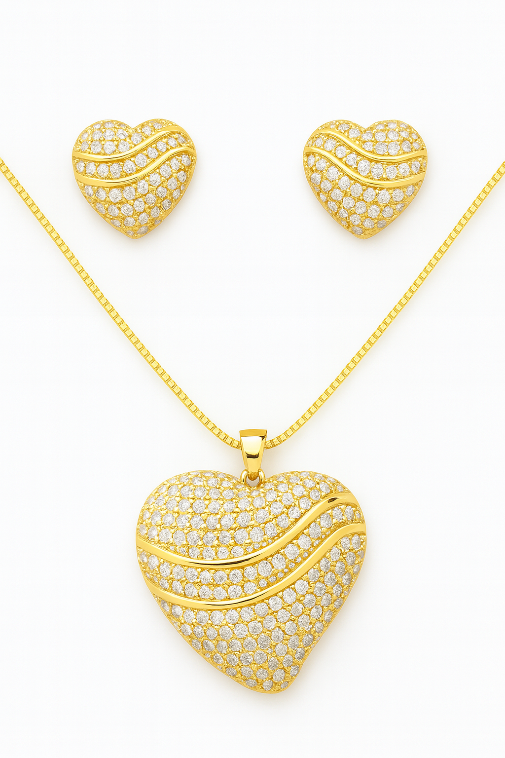 Conjunto coração cravejado em zircônia cristal