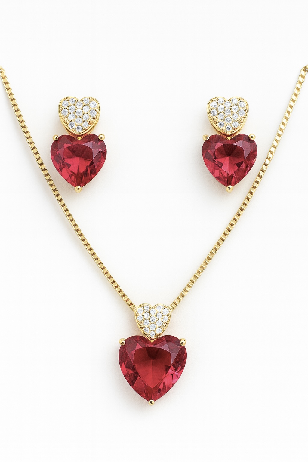Conjunto dois corações pedra vermelha rubi