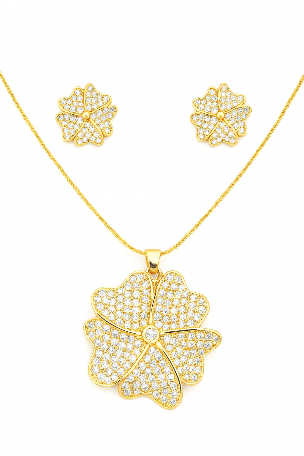 Conjunto flor cravejado em zircônia cristal