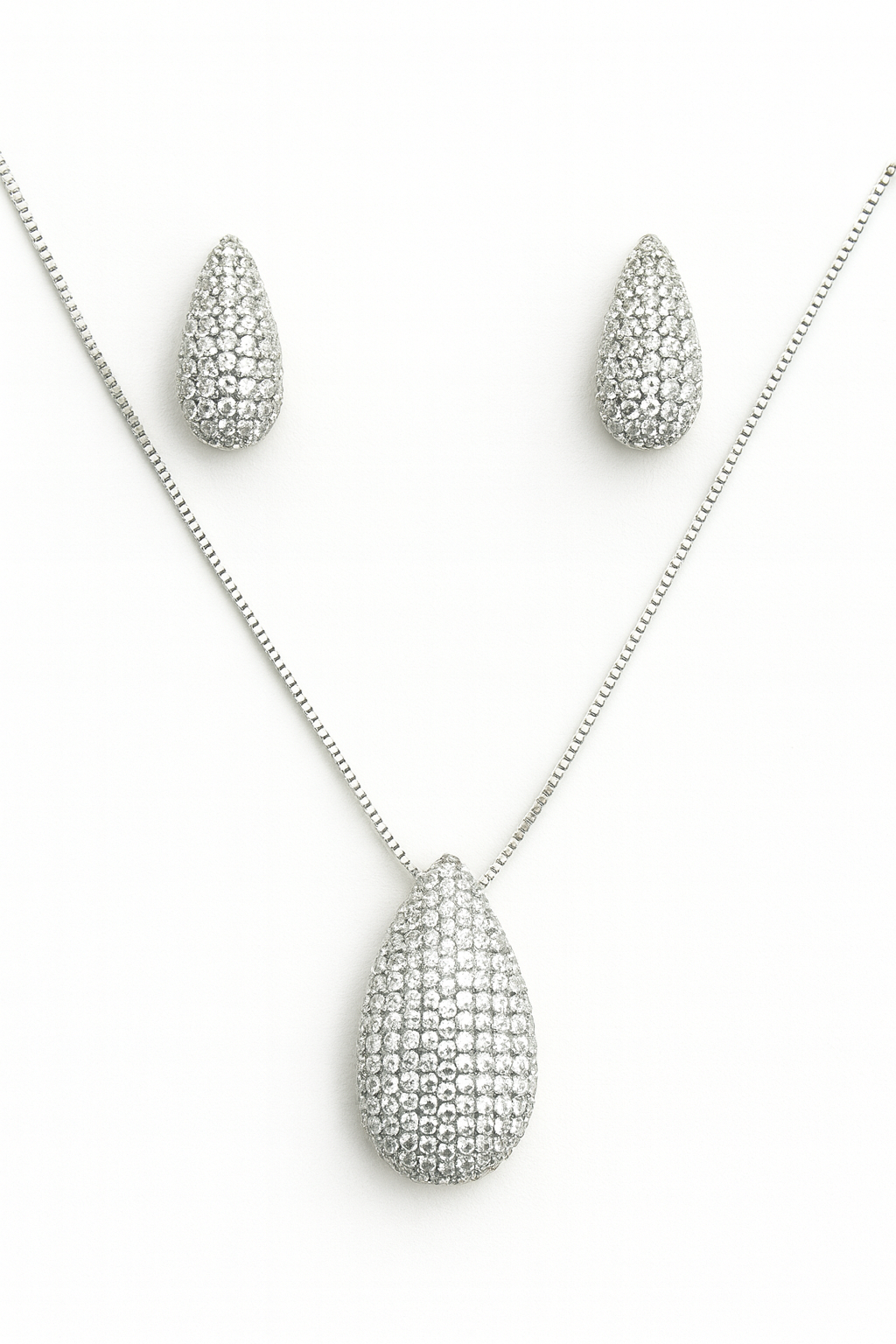 Conjunto gota cravejado em zircônia cristal banho ródio branco