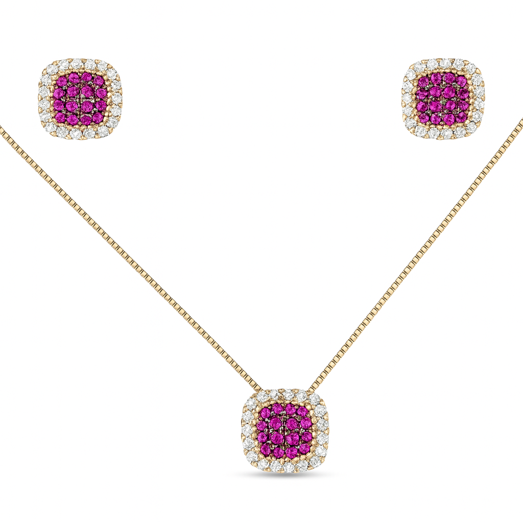 Conjunto quadrado cravejado em zircônia rosa pink
